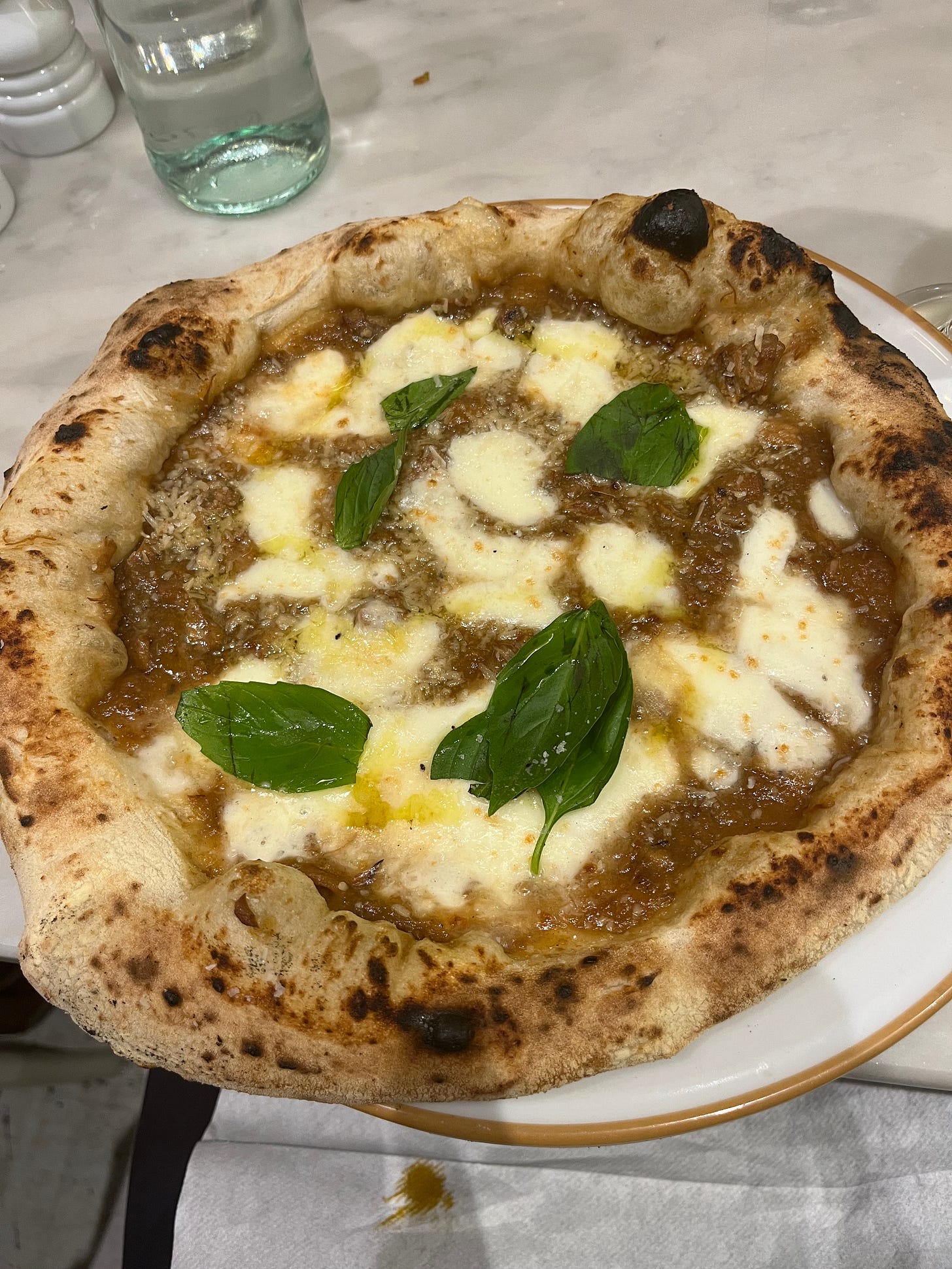 This was the pizza I was most looking forward to, the one I ordered. I’ve never had Italian lamb ragu so I was intrigued.5 The first thing that hits you is the smell, I didn’t even need to taste it and I knew I was in for a good time. A smell that only a long and slow cooked red meat can achieve. Biting into a slice, I was hit with lovely complex flavours of the lamb. It was almost gamey in its richness and the onions provided a sweetness that made it so comforting and satisfying. If you had a slice with basil on it, it provided a fresh finishing note. It was such a rich and perfectly balanced flavour profile. The amazing thing about it however, was that it didn’t feel too heavy. It’s lightness, given it’s depth of flavour, was magical to me. I damn near inhaled the pizza.