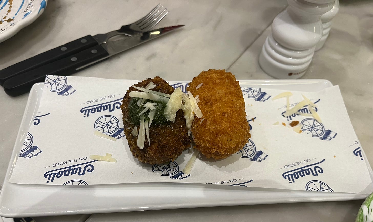 The second suppli was a Cacio E Pepe which after the pesto suppli I was gassed for. Cacio E Pepe is one of my most favourite pastas in this world, whether it’s at a restaurant or home cooking Sadly however this suppli didn’t live up to expectations. It was just fine and the more I think about it, bland. I could definitely taste some of the cheeses but the warmth from the pepper was missing. This made it kind of stodgy.